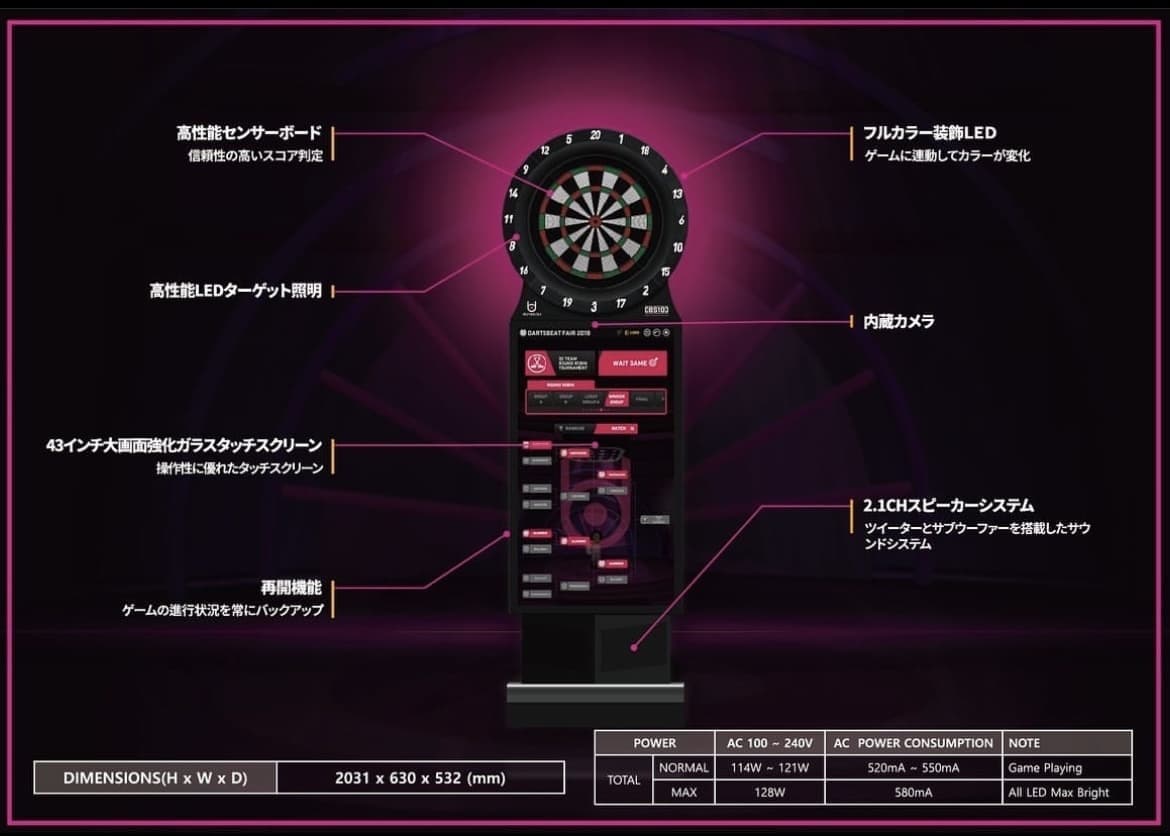 - オンライン機能搭載: スタンダードなゲームはもちろん、DARTSBEATオリジナルゲームも多数搭載。オンラインでのトーナメントや1vs1対戦も可能です1。